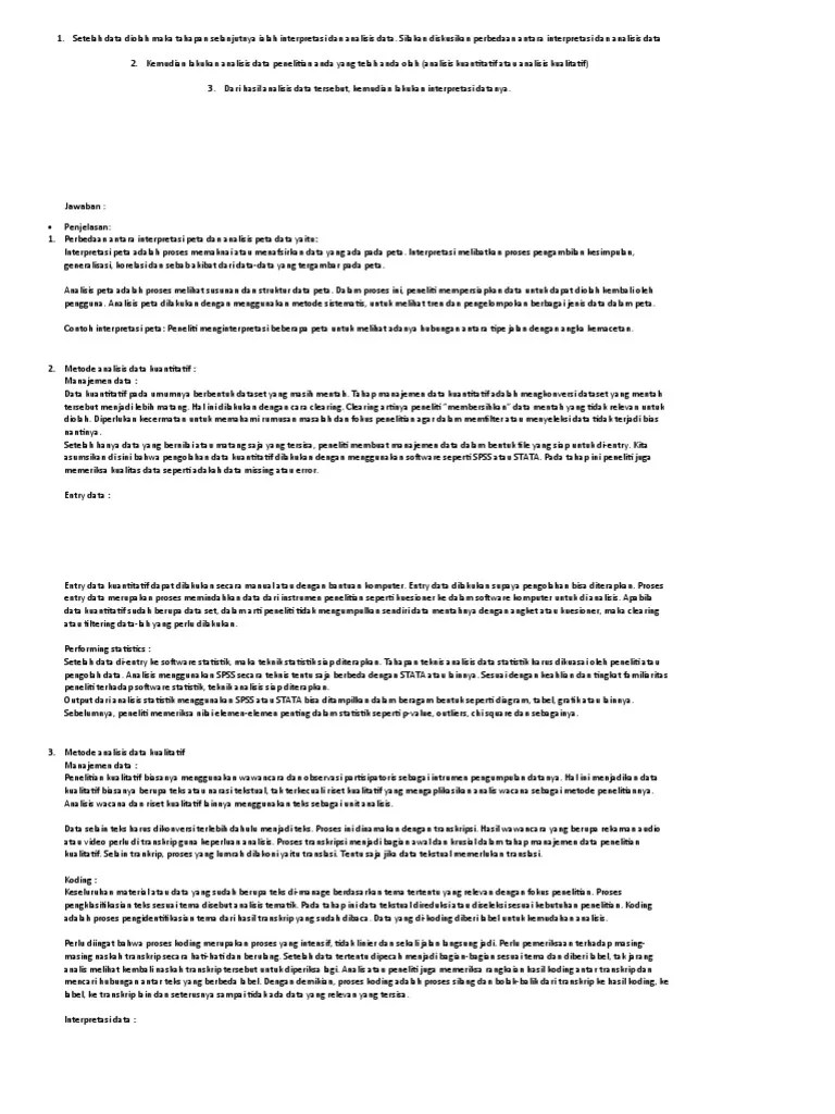 Data yakni kegiatan yang dilakukan untuk mengubah data hasil dari . Dengan kata lain sampel kami . Teknik analisis data dalam penelitian kuantitatif menggunakan statistik. Analisis data wawancara kualitatif sering dilakukan . Pada contoh yang pertama, hasil akhir kajiannya adalah berupa.