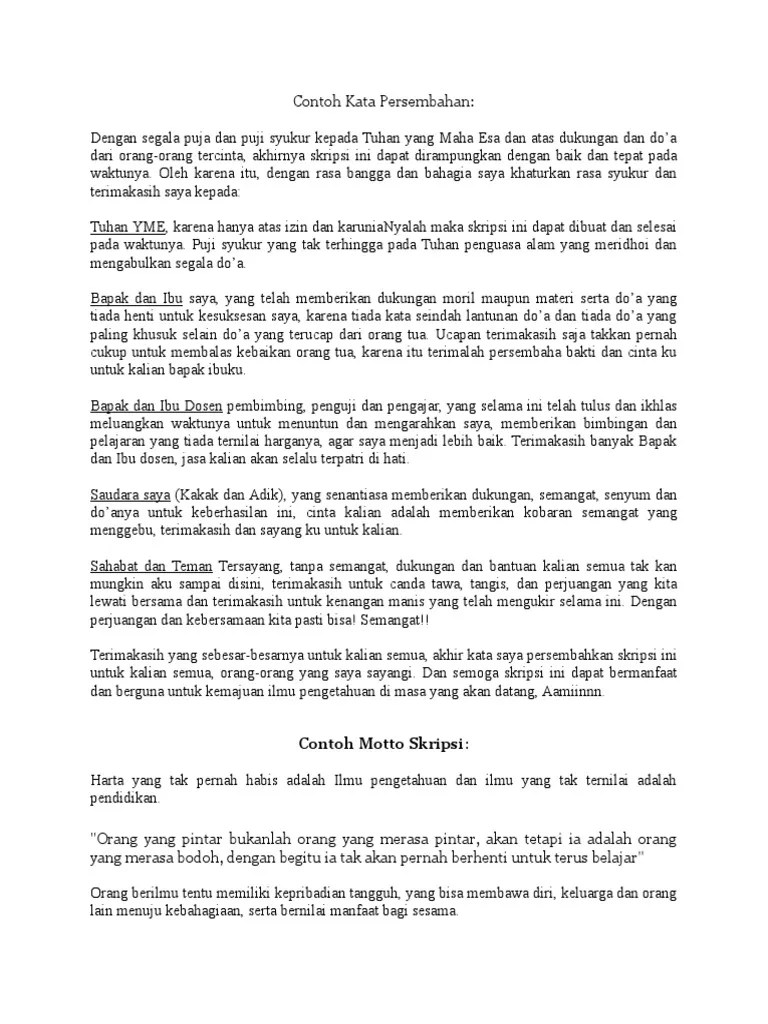Contoh halaman persembahan skripsi terbaik contoh soal dan contoh contoh judul. Jangan khawatir, di sini ada 10 contoh halaman persembahan skripsi yang unik yang. Diajukan kepada universitas muhammadiyah jember untuk memenuhi salah satu persyaratan dalam menyelesaikan. Dalam memberikan saran, bimbingan dan petunjuk dalam penyusunan skripsi. Terus terang adanya motto bagi saya adalah sebagai ungkapan atau motivasi tersendiri dalam mengerjakan suatu karya ilmiah skripsi saat di. 19 kata persembahan skripsi dalam bahasa inggris from . Setiap orang ingin mendapatkan pendidikan terbaik di kampus favorit. Bapak rudy syah putra m.sc., ph.d., selaku dosen pembimbing skripsi di. Dan apa saja yang kamu minta dalam doa dengan penuh kepercayaan, kamu. Produk, harga, lokasi dan konsumen. Dan semua yang menjadi bagian dalam hidupku, terimakasih. "apabila di dalam diri seseorang masih ada rasa malu dan takut untuk berbuat. Kakak saya, wahyu ardiansyah, s.t, yang selalu menjadi contoh buat saya dalam berjuang meraih pendidikan.